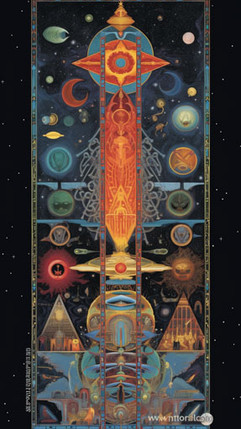 Inspired by the mysticism and meticulous architectural style of Paul Laffoley, our 'Cosmic Symphony' transports you into an otherworldly realm. Laffoley, renowned for his highly detailed, mandala-like pieces, constantly explored the intersection of philosophy, science, and spirituality, giving life to unique dimensions that existed somewhere between the realm of the known and the unknown.